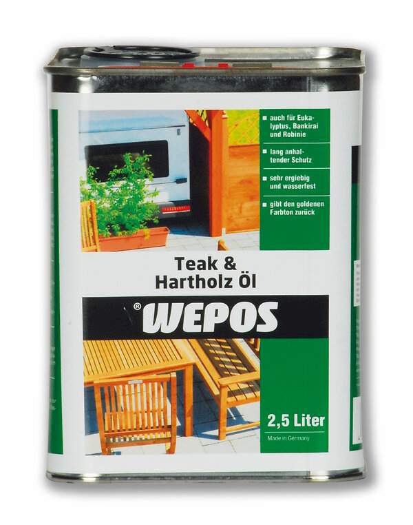 Teakový olej a olej z tvrdého dreva. Tiež na eukalyptus, bankirai a robiniu. Dlhotrvajúca ochrana. Veľmi úsporný a odolný voči vode. Obnovuje zlatý farebný tón. Udržiava a chráni olejované a prírodné povrchy z vysokokvalitného tvrdého dreva. Ošetrené drevo zostáva odolné a je chránené pred vysychaním, poveternostnými vplyvmi a tvorbou zeleného filmu alebo napadnutím hubami. Pravidelná aplikácia obnovuje pôvodnú farbu a ochranu. Preniká hlboko do povrchu a rýchlo schne.